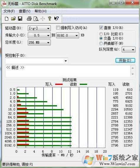 1、首先首先把2.0 U盘插在机箱面板2.0的接口上,这时候测试结果显示,读取速度一般保持在10MB/s左右,而写入的速度则主要集中在3MB/s左右