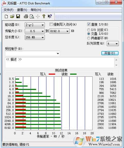 2、紧接着,把2.0U 盘插在3.0的接口上跑测试,这时候速度基本上与之前保持一致,没有任何提升
