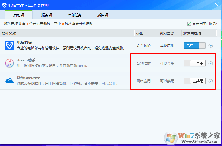 利用安全软件将多余的启动项禁用,这里建议使用360安全卫视和qq电脑管家操作,此方法小编就不多做介绍了,大家自己都会