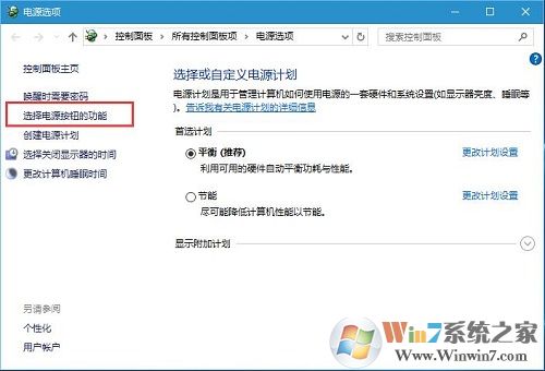 4、打开电源选项后,点击左侧的“选择电源按钮的功能”,如图。