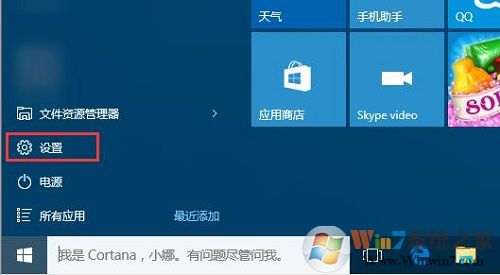 1、首先点击Win10开始菜单,然后点击进入“设置”,如图所示。