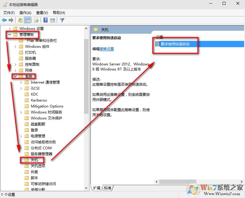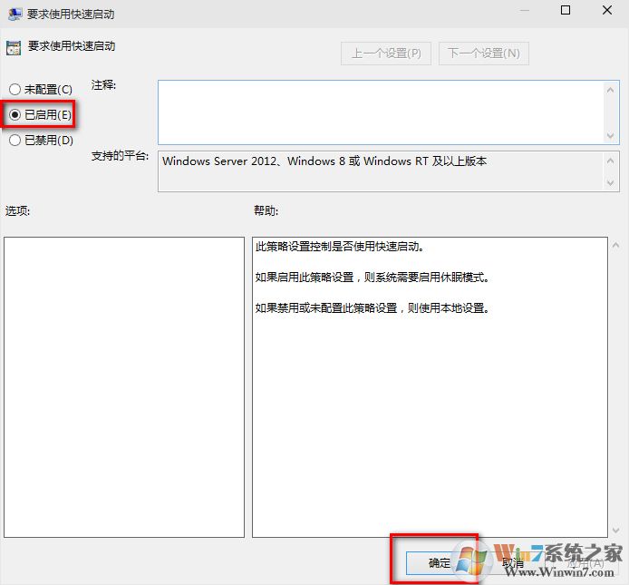 (这里选择了启用,那么在就会出现在上面控制面板里的启用快速启动是灰色的,)