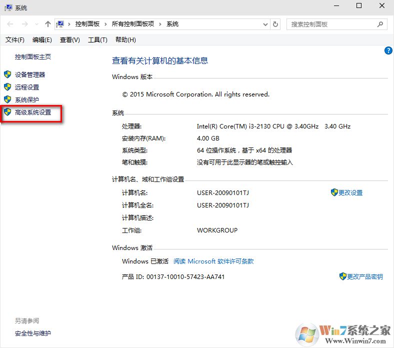 然后,选择"高级系统设置"
