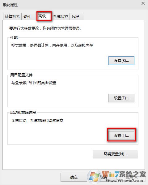 在"启动和故障恢复"那里,点击"设置"