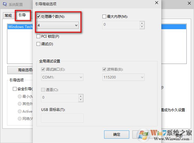 然后勾上"处理器个数",点击下拉箭头,选择最大的数字