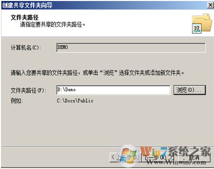例如,需要共享驱动器D上路径\users\mytest中名为demo的文件夹,可以键入: