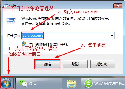 1、按WIN+R 调出运行对话框,然后输入 services.msc 回车;