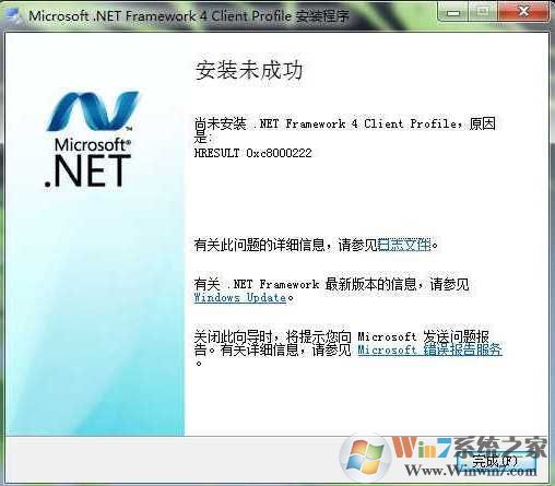 以上就是Win7 .Net Framework 4.0安装未成功HRESULT 0xc8000222解决方法了,希望对大家有帮助。