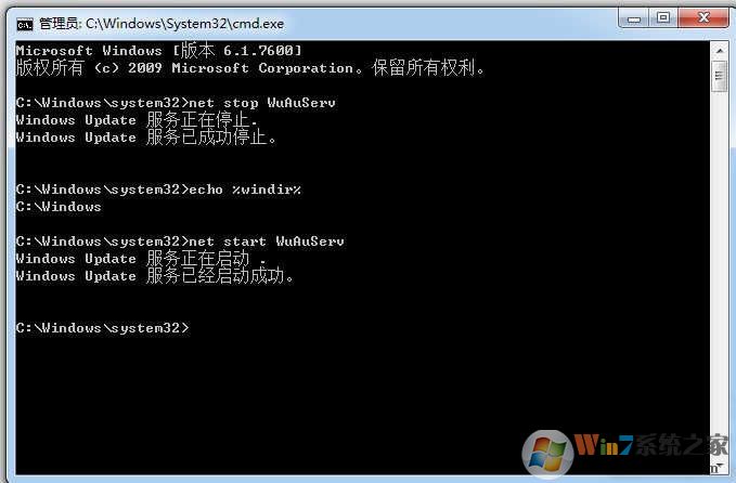 2.上面的cmd命令行里面输入 net stop WuAuServ