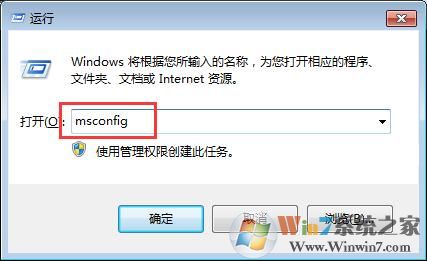 1、按win+r组合快捷键,打开运行窗口,输入“msconfig”回车确认。如下图所示: