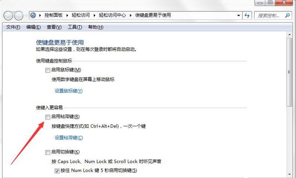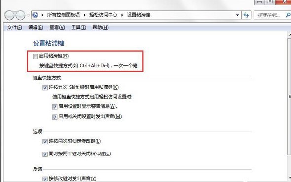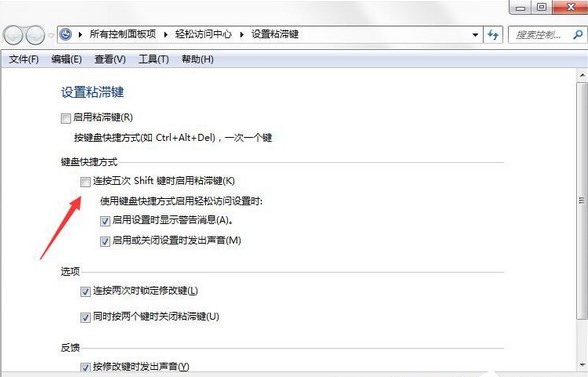 3、你还得勾去连续五次shift键时启用粘滞键;