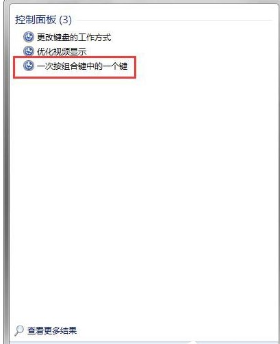 4、这样的话,下次再怎么按shift,也不会出现“粘滞键”窗口,如果你想改原来的设置话,你要开始菜单中输入“粘滞键”,就可以找到“一次按组合键中的一个键”;