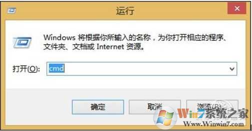1、在Win7/Win8系统下或是WinPE下,按快捷键 “Win+R” 弹出运行窗口,然后输入“CMD”。 WinPE里用类似方法打开命令行提示符。