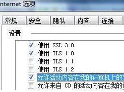 3、在新弹出的IE操作栏中在选择“Internet选项”这个选项打开,然后在选中“高级”选项这个标题打开。然后就看到选项“允许活动内容在我的计算机上的文件中运行”,我们需要选择允许。