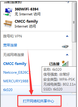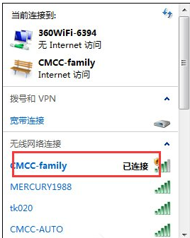1、首先要确定你的电脑能连接上CMCC,这里小编连接的是CMCC-family。