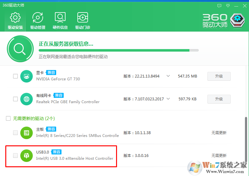 解决方法:从对应品牌主板官方下载USB控制器驱动程序,可使用360驱动大师或驱动精灵进行智能更新安装。