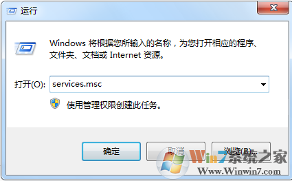 2、输入services.msc,确定打开服务