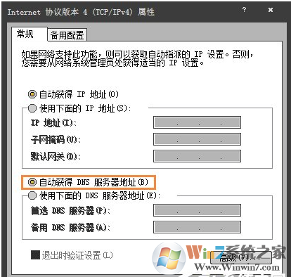 6、在弹出的设置中,然后勾选“自动获得DNS服务器地址”。一般使用路由器,此选项都设置为自动获取。