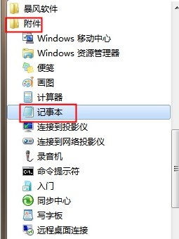 1、点击开始菜单,点击“所有程序”—“附件”,点击“记事本”;