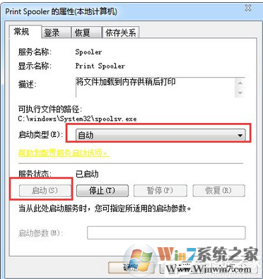 4、设置启动好之后(建议设置为自动启动,避免重启之后又停止了)再次打开打印机进行打印测试看看是不是正常了。