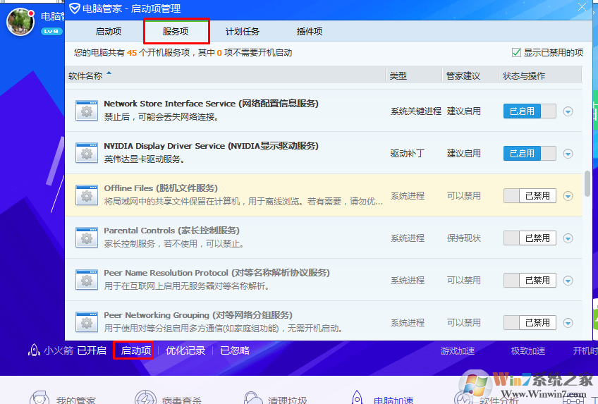 进入自己安装的安全优化软件中,找到开机启动项,并将启动设置为启动