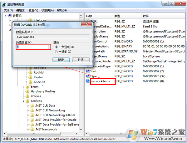4、然后双击该值,在打开的窗口中键入下列数值并保存退出。如下图所示。