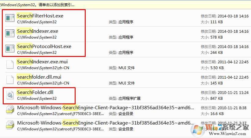 C:\windows\System32\文件夹下的 SearchFilterHost.exe、SearchIndexer.exe、SearchProtocolHost.exe、SearchFolder.dll 到问题电脑下覆盖。