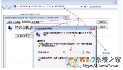 步骤四现在弹出了一个新的小窗口在上面切换到【疑难解答】选项卡然后窗口上点击【更改设置】按钮即可打开硬件加速窗口通过调整滑块来对硬件进行加速了如图所示