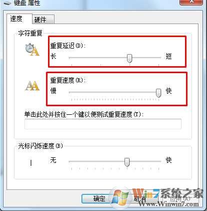 2、设置重复延迟,和重复速度两个指标,按下图设置就可以了!