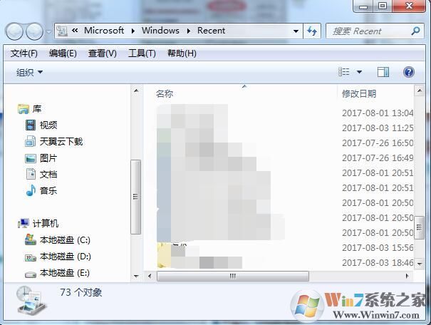 Win7系统RECENT文件目录在:C:\Users\用户名\AppData\Roaming\Microsoft\Windows\Recent