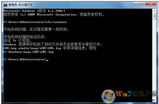 2、输入sfc/scannow按回车运行,让windows自动检查。需要等一段时间。扫描完成再重启就OK了。
