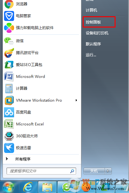 1、 点击开始菜单,然后点击“控制面板”;