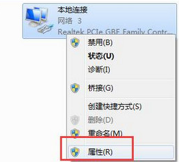 2、在窗口中,点击更改适配器设置,接着鼠标右键本地连接,选择属性,