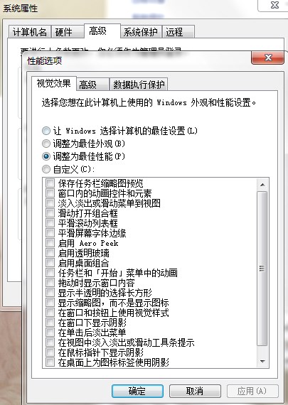 4、然后选择“调整为最佳性能”并点击确定按钮;