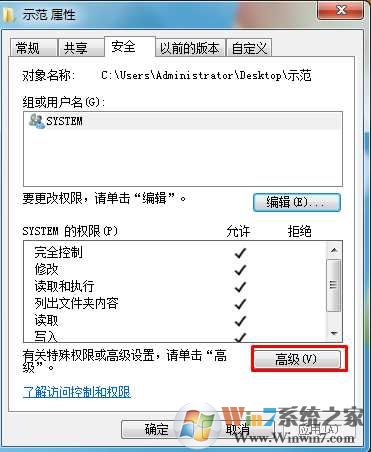 1、右键点击要操作的方法或文件夹,选择属性-安全—高级按钮;