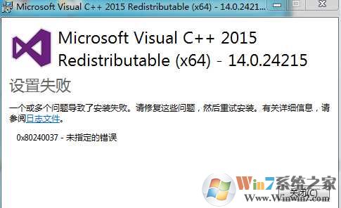 上述就是小编和大家分享的Win7 64位系统VC++2015安装失败80240037解决方法