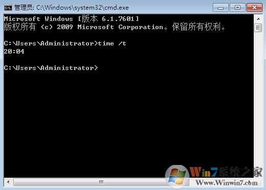2、在打开的命令提示符窗口中输入“time /t ”获得现在的时间,比如是10:31。