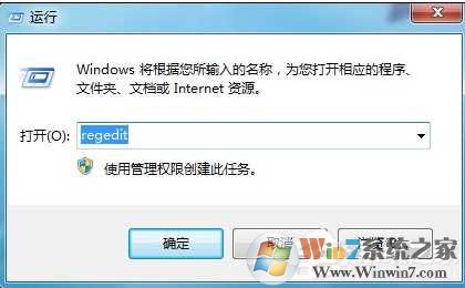 1、点击屏幕左下角的“开始”找到“运行”菜单项单击,在运行对话框的输入框中键入:regedit 然后点“确定”按钮。