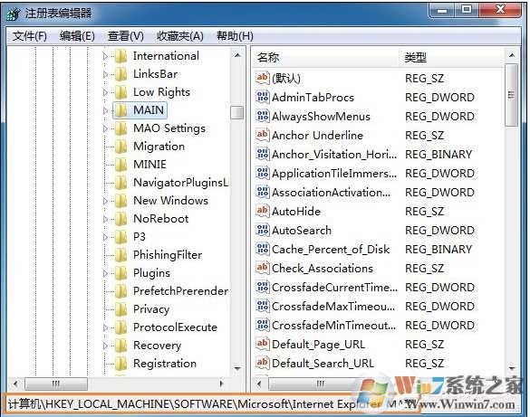 HKEY_LOCAL_MACHINE\SOFTWARE\Microsoft\Internet Explorer\MAIN