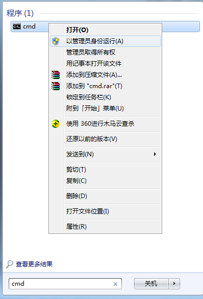 2、然后我们以管理员身份运行命令提示符;可以在开始菜单搜索栏输入cmd来打开