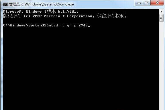 3、在光标处输入 ntsd -c q -p 进程的PID值 命令并回车,这时系统会强制关闭该进程。