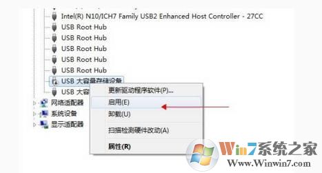 解决方法:在设备管理器中启用USB大容量存储设备,然后打开计算机即可找到U盘。