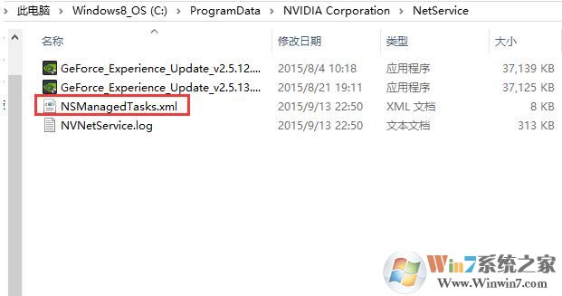 2、进入C:\ProgramData\Nvidia Corporation\NetService,删掉 NSManagedTasks.xml 文件;