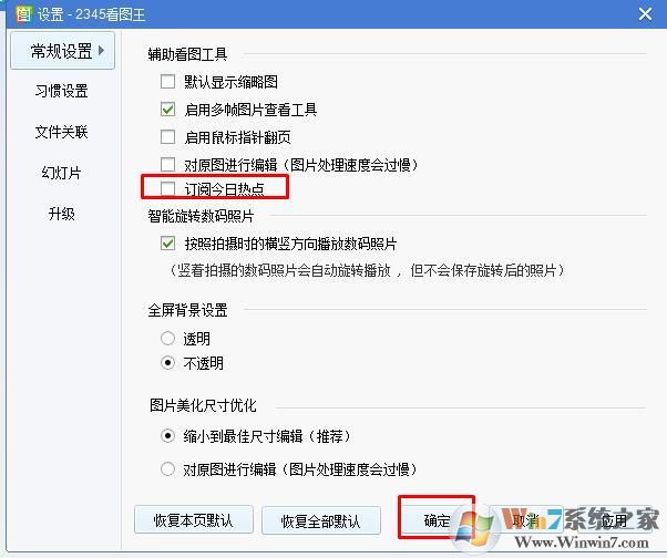 2、在常规设置中,取消勾选“订阅今日热点”选项,然后确定即可。