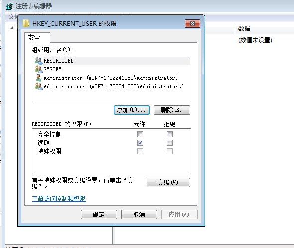 打开HKEY_CURRENT_USER权限