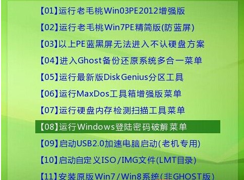 1、开机启动U盘启动工具箱,进入启动菜单,选择“运行windows登录密码破解菜单”如下图: