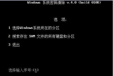 3、然后我们选择系统所在分区“1”,当然你不知道的情况下亦可使用搜索并且回车;