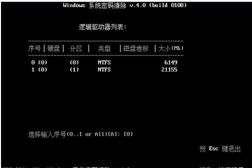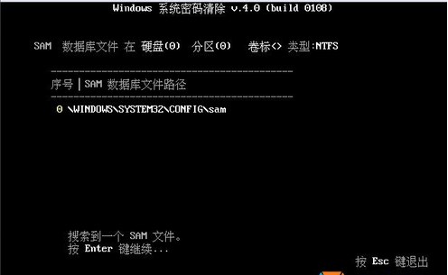 4、我们选择系统所在分区,一般为0分区,按确定工具会自动搜索sam文件,结果如下;