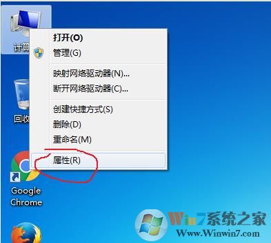 2、右键点击桌面上的计算机,右键—属性;