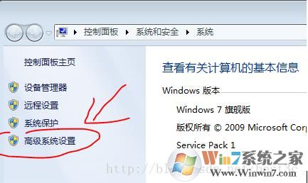 3、进入高级系统设置选项,点击;win7旗舰版www.xiuchufang.com